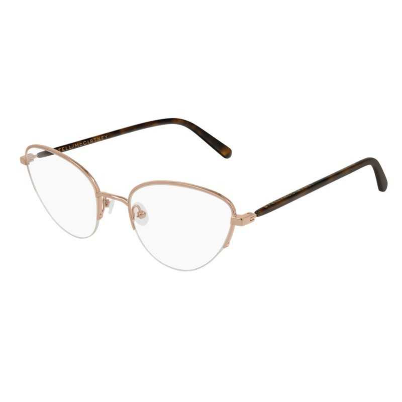 Descrição do Produto: O Stella McCartney SC0186O 002 é a expressão máxima do luxo consciente e da feminilidade moderna. Esta armação “nylor” (meio aro) apresenta uma silhueta “Cat-Eye” (gatinho) delicada e sofisticada, projetada para mulheres que buscam leveza visual sem abrir mão de um design marcante. A combinação do metal em tom rose gold com as hastes em acetato tartaruga cria um contraste clássico e iluminado, perfeito para suavizar e elevar a expressão facial.
